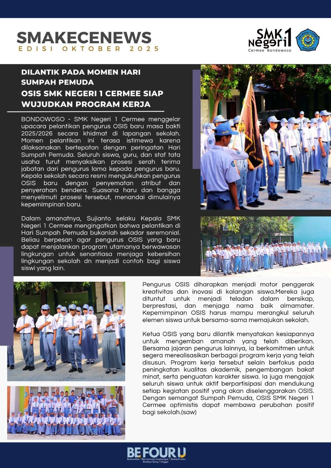 DILANTIK PADA MOMEN HARI SUMPAH PEMUDA OSIS SMK NEGERI 1 CERMEE SIAP WUJUDKAN PROGRAM KERJA